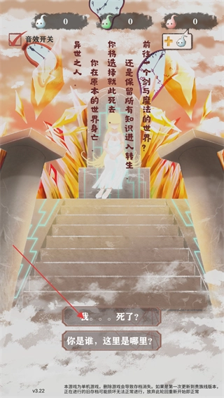 在当前的剧情界面里,点击第一个选项,就能推动这段剧情的进展,进而进入到后续关于转生选择的相关环节。