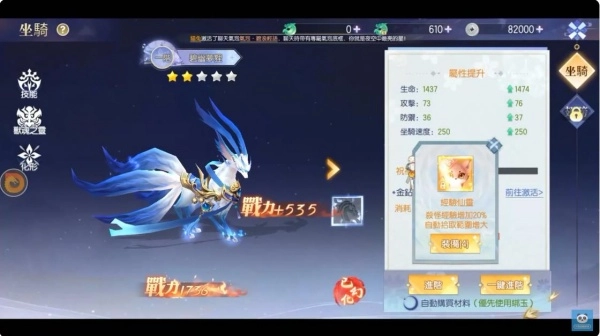坐骑神兽可以帮助你在游戏中获得额外的实力加成。