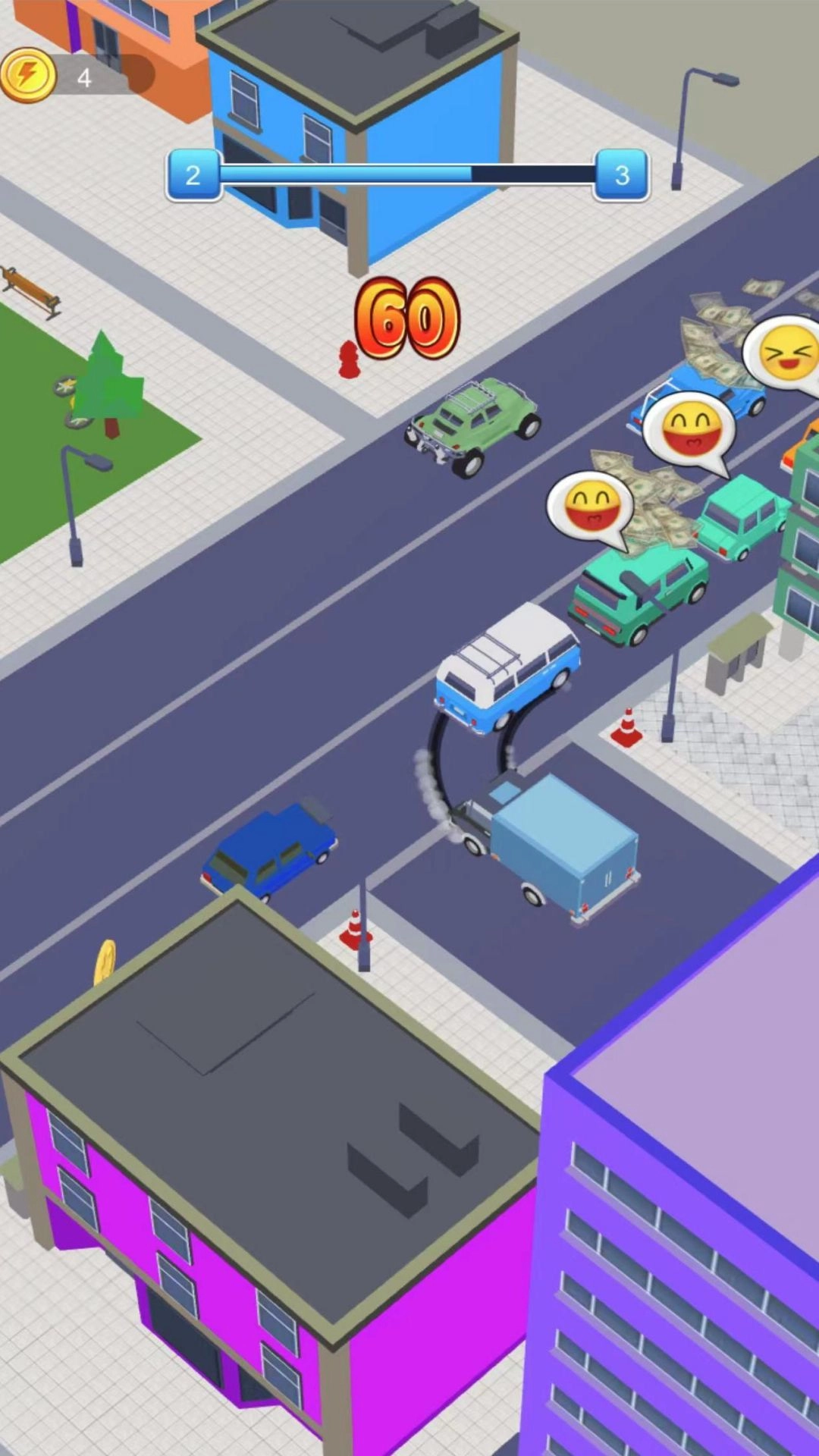 3、玩家需及时转向、刹车或加速绕开,碰撞障碍会导致车辆减速、乘客掉落,甚至触发交通警察追捕。