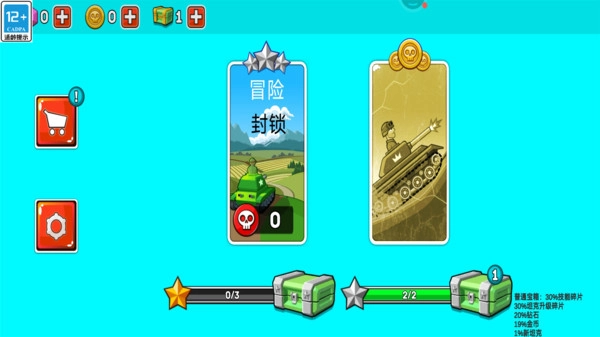 冒险封锁等模式,挑战不同难度关卡,击败敌坦推进游戏进程。