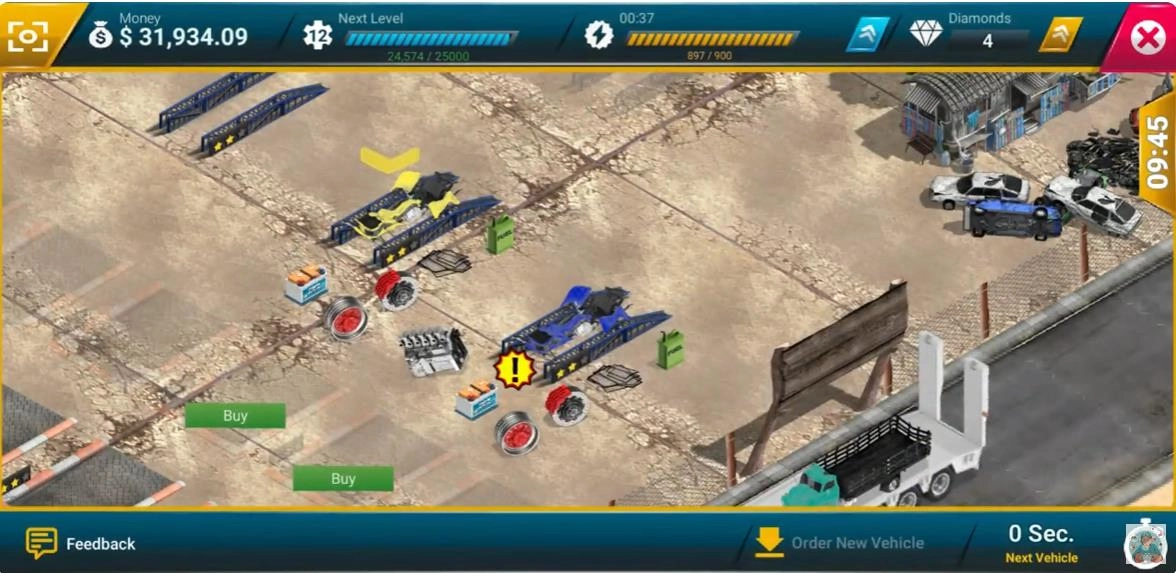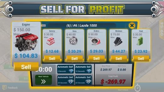 3. 丰富多样的汽车与零件库系统,还能进行收藏和交易操作。收购各类废旧车辆后启动拆解流程。2、通过手动点击或自动化操作进行拆解,从中获取金属、电子元件、发动机等各类部件。3、把拆解得到的零件分类打包,既可对外出售,也能用于工厂的升级改造。