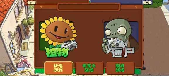 :有针对性地选择植物,享受更多惊喜,允许玩家选择自己的阵营,体验真人对抗的独特游戏乐趣。1、点击本战植物大战僵尸时空战争版游戏,打开游戏,点击“对战”模式。