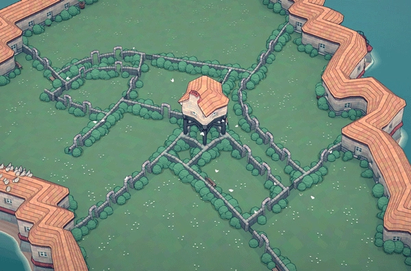 在花园周围的墙壁内侧建造基础拱门,就能形成小路。需要注意的是,如果基础拱门之间的间距过大,可能会无法触发生成效果。