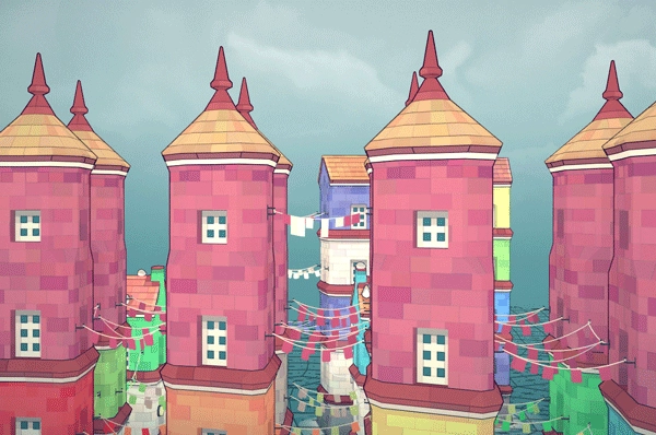 彩旗会在间隔1个或2个空间间隙的2层及以上建筑物之间生成,且这些建筑物需要满足上一层建筑基块与下一层的颜色不同。