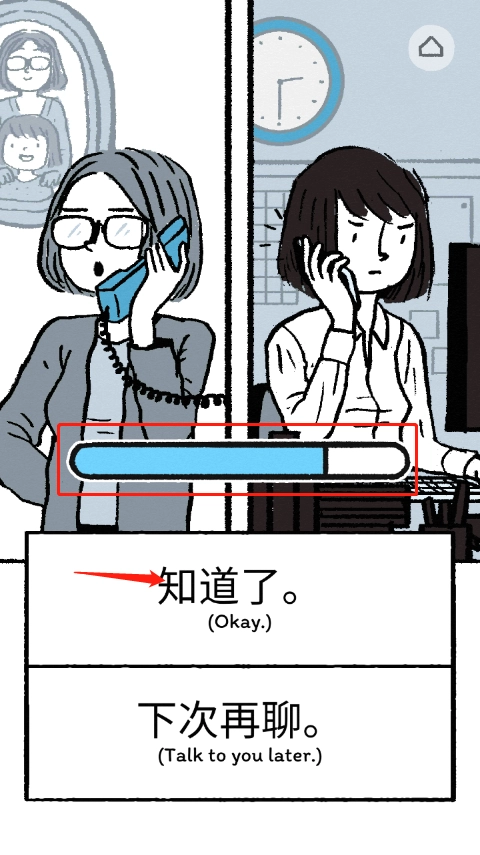 6、到公司了,开始努力上班啦,点击两种数量相同的$钞票,直到进度条满了,就完成今天的工作啦。