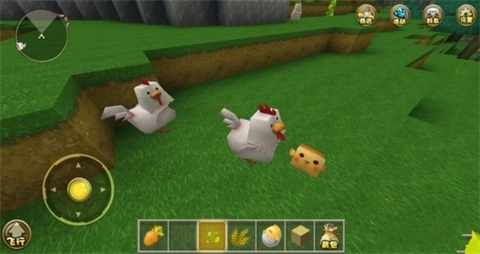 手拿种子点动物,点完两只小鸡,小小鸡出生了