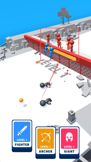 4、切换兵种:出现LEVEL2提示,挑选FIGHTER、ARCHER或GIANT,立刻进入下一关。
