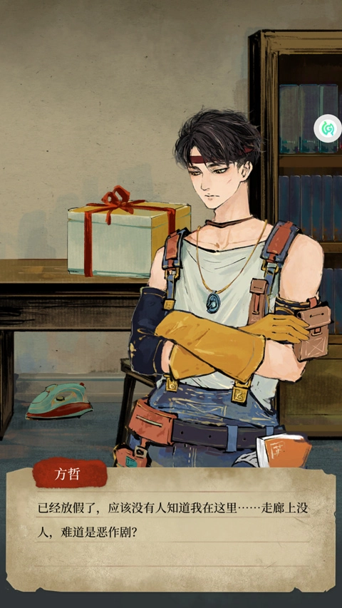 3、进入游戏后,画面呈现出这样的场景:玩家所扮演的主角“方哲”,意外地收到了一个礼品盒。