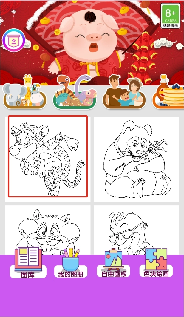 1、选择绘画对象:孩子可以从游戏提供的众多小动物和植物图案中选择自己喜欢的绘画对象,开始创作之旅。