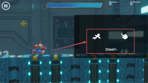 3、冲刺操作:点击“Dash”按钮,让角色进行冲刺。