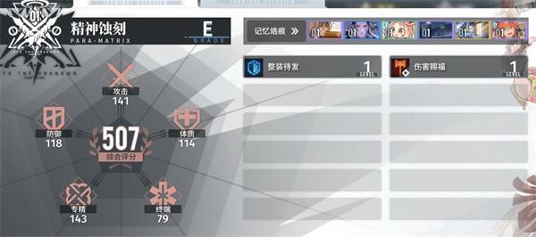 6、除了常规的养成,游戏与同类作品最大的不同是里有个叫精神蚀刻的系统,这个系统是放置在小队队长身上,会给予全队属性加成,这也是整个队伍水平上升的基础。所以单个角色再强,不管精神蚀刻,整个队伍还是比较拉胯。由于游戏里的角色除了他们各自的属性,还会有个加成的系数百分比,这个百分比可以靠游戏里的突破和体能特训来达到,然后再搭配上队长对应的精神蚀刻,这样就会有个百分比强化后的实际属性,来实现更强力的成长,更强调队伍的整体性。体能特训和突破都是常规的养成玩法了,只不过形式不太一样。