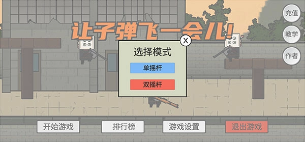 :火山哥哥让子弹飞的游戏具有高难度的双遥感操作,让玩家可以适应不同的控制操作,提高自己手部协调能力。1、打开让子弹飞,点击“开始游戏”。