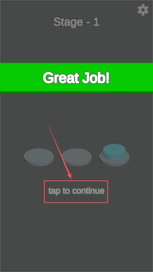 4、领取奖励:当画面显示“Great Job!”,点击“tap to continue”按钮,领取通关奖励并进入下一关。