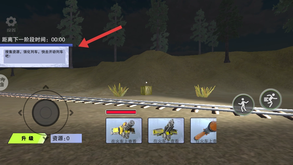 2、进入游戏场景后,留意提示“搜集资源,强化列车,快去开动列车吧”,明确首要任务是收集资源。
