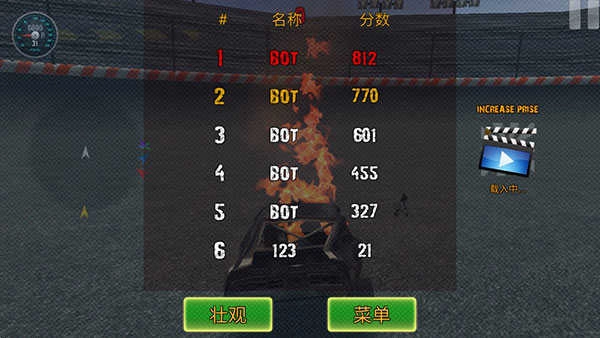 4.操控你的赛车尽情相撞,破坏吧!左边方向,右边油门,刹车,左上角是码表,中间是地图