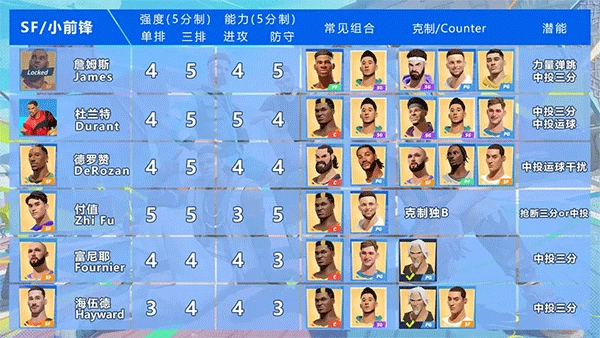 小前锋位置的球员操作难度处于适中水平,比较适合偏爱中距离投篮或突破得分的玩家优先选择,不过这类球员对使用者观察内线空位以及把握进攻时机的能力要求相对较高。