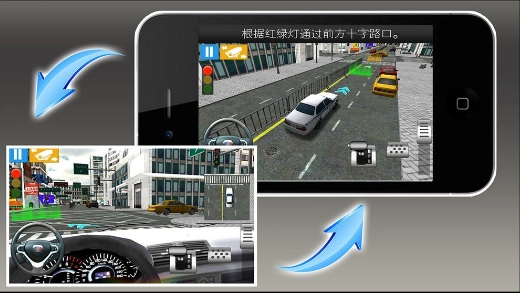 在路考环节,游戏把一些常用的驾驶技能设计成了三维游戏关卡。