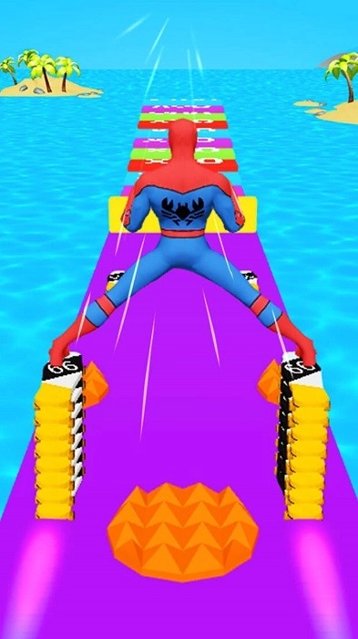 《超级英雄冲锋》蜘蛛侠决定去度假,他厌倦了与反派无休止的战斗,夏天相对平静,显然邪恶也决定休息一下。 在短暂的休息期间,超级英雄决定掌握轮子板并开始滑板。 他没有这项运动的经验,但你会在蜘蛛侠滑板中帮助他,为此你只需要快速反应。 蜘蛛已经加速并全速奔跑,前方有很多障碍,你需要对它们做出反应,但英雄不知道如何。