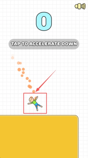 开始下落:屏幕上显示“0 TAP TO ACCELERATEDOWN”,通过连续点击可以让小人偶加快下落速度。