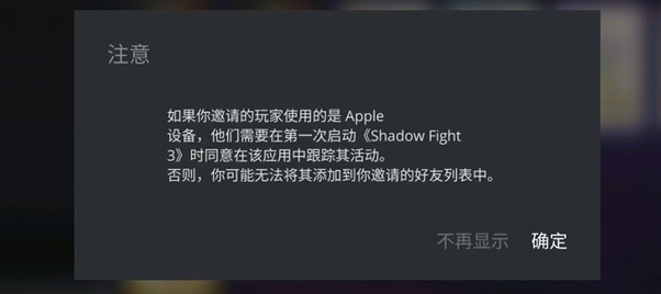 若双方不属于同一系统,首次启动游戏时需同意应用跟踪。