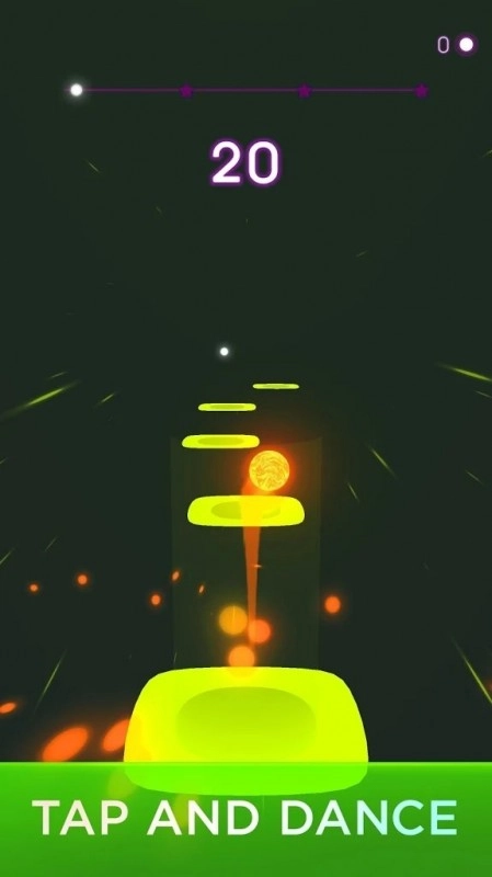 聆听快节奏的歌曲,点击屏幕完成急转弯,尽可能收集更多星星,挑战更远的距离。