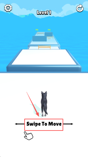进入关卡时:屏幕上会显示“Level1 Swipe To Move”的提示,用手指横向滑动,角色就会立刻向前移动。