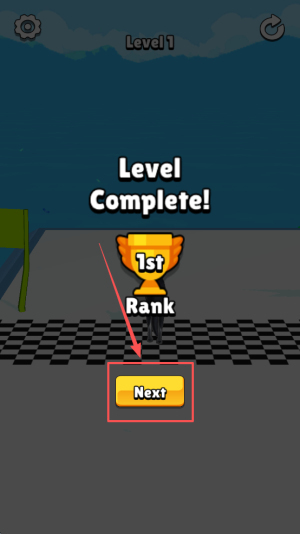 领取首胜的操作步骤:当屏幕弹出“Level Complete! 1st Next”提示时,点击“Next”按钮,即可立即领取第一名的奖励并继续后续流程。