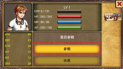 选择角色点击参战进入战斗。