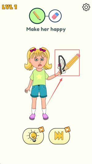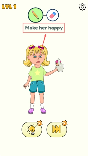 开始游戏:进入关卡界面后,留意目标提示“Make her hy”,接着点击“直接开始”按钮,随后通过滑动操作来哄女友开心。