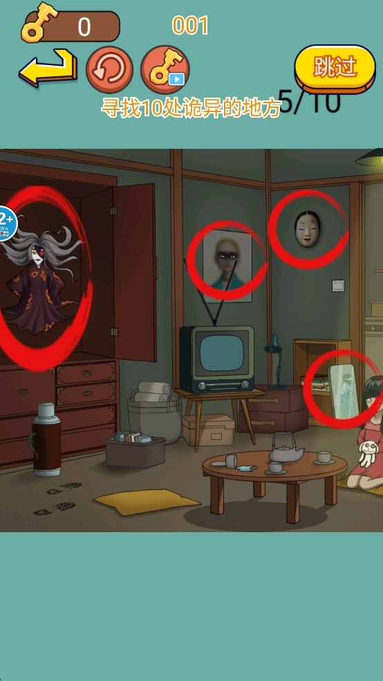 在游戏关卡里,依据提示找出并点击所有要求的诡异地方,以此完成挑战。