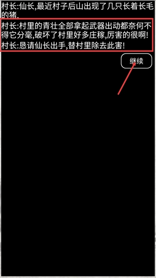 查看村长发布的关于长毛猪的委托说明后,点击【继续】按钮,就能确认任务的具体信息并进入后续的执行环节。