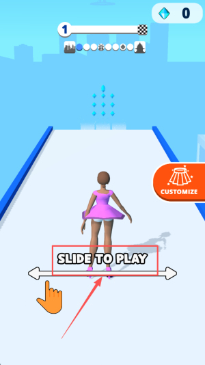 开始游戏:进入关卡界面后,先确认目标要求,接着按住“SLIDE TO PLAY”滑块并滑动,即可启动滑行冲刺。