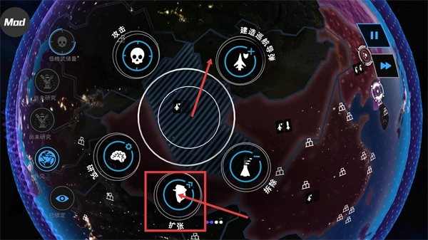 启用【扩张】功能,利用已储备的武器资源,拓展己方控制区域,增强战略与资源获取优势。