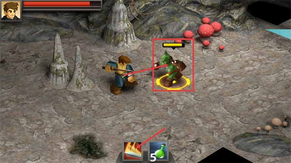 当遭遇【哥布林】这类敌人时,建议使用攻击技能主动发起进攻,并且要提前准备好【5瓶绿色药水】,以便在战斗中能及时恢复自身状态。