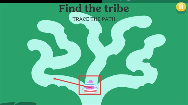 在【Find-the-tribe】关卡里,要控制角色顺着【TRACE-THE-PATH】的路线行进,跟着指引完成路径追踪的任务。