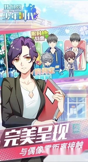 一生仅有一次的青春,我们尽情呼吸,肆意追梦,那是独属于我们的少年时代!《我们的少年时代》是由TFBOYS、薛之谦与李小璐主演的同名电视剧正版授权,乐逗游戏倾力研发的校园青春偶像养成手游。游戏高度还原电视剧情,玩家将以偶像同学的身份踏入游戏世界,与偶像展开零距离互动,解锁专属剧情。更有精美偶像立绘、顶级配音团队加持,搭配偶像个性换装、甜点社团经营、公寓家具布置、偶像榜单应援、情感培养等多元玩法,为你打造全新的偶像养成体验!