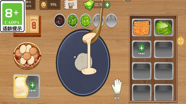 可以和好友联机较量每日的营业额,也能参与煎饼大赛去角逐“煎饼之王”的头衔。