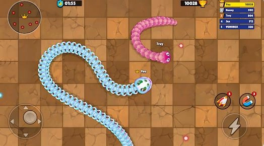 这款游戏的玩法看似简单,实则蕴含着丰富的策略深度,玩家的每一个操作都需要经过深思熟虑。无论是通过滑行快速移动、爬行悄悄接近目标,还是持续吞噬敌人来获得成长,最终的目标始终是成为游戏排行榜上体型最大、实力最强的那条虫子。游戏巧妙地结合了经典的大逃杀玩法,玩家将置身于一个遍布对手与障碍的广阔战场,与其他玩家展开激烈的竞争,努力在残酷的环境中生存下来,并通过不断吞噬对手来壮大自身,最终登上胜利的顶峰。