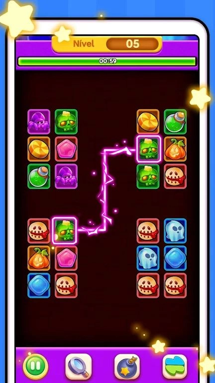 操作简单易上手,画风可爱,能让你在浓郁的万圣节氛围里,尽情体验连连看消除的乐趣!