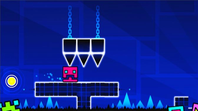 在游戏里,按照节奏进行点击操作,操控角色在危机四伏的通道与障碍物之间跳跃、飞行并翻转,达成关卡设定的目标。