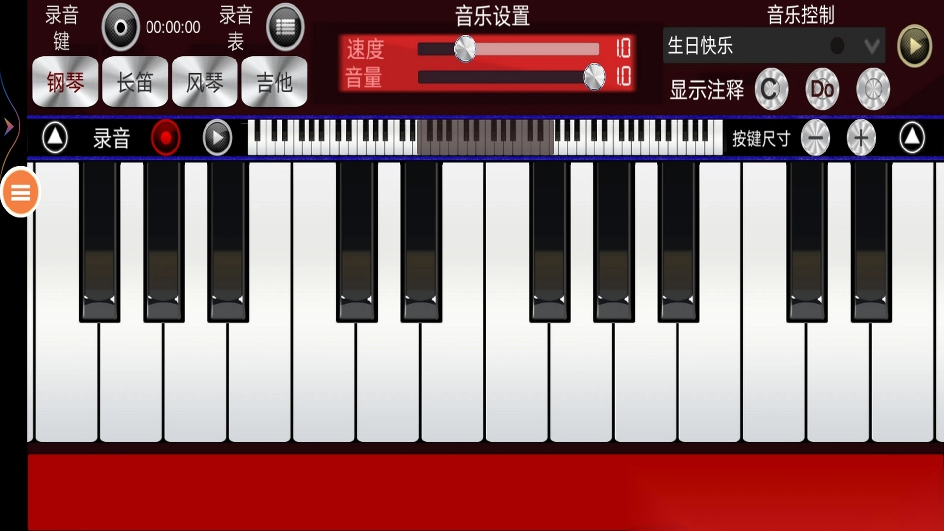 每个琴键的大小和间距均与真实钢琴相同,只需触摸屏幕上的琴键就能弹奏,进而获得真实的弹奏感受。