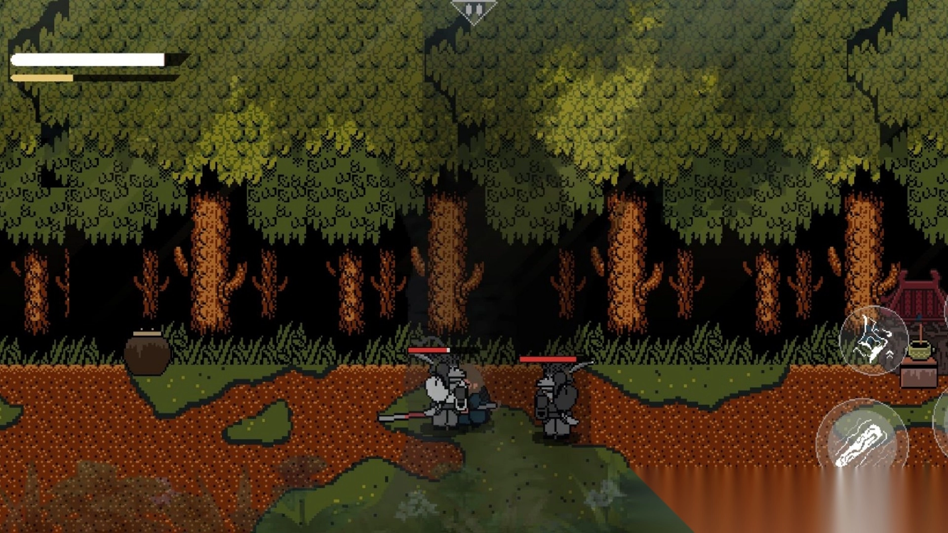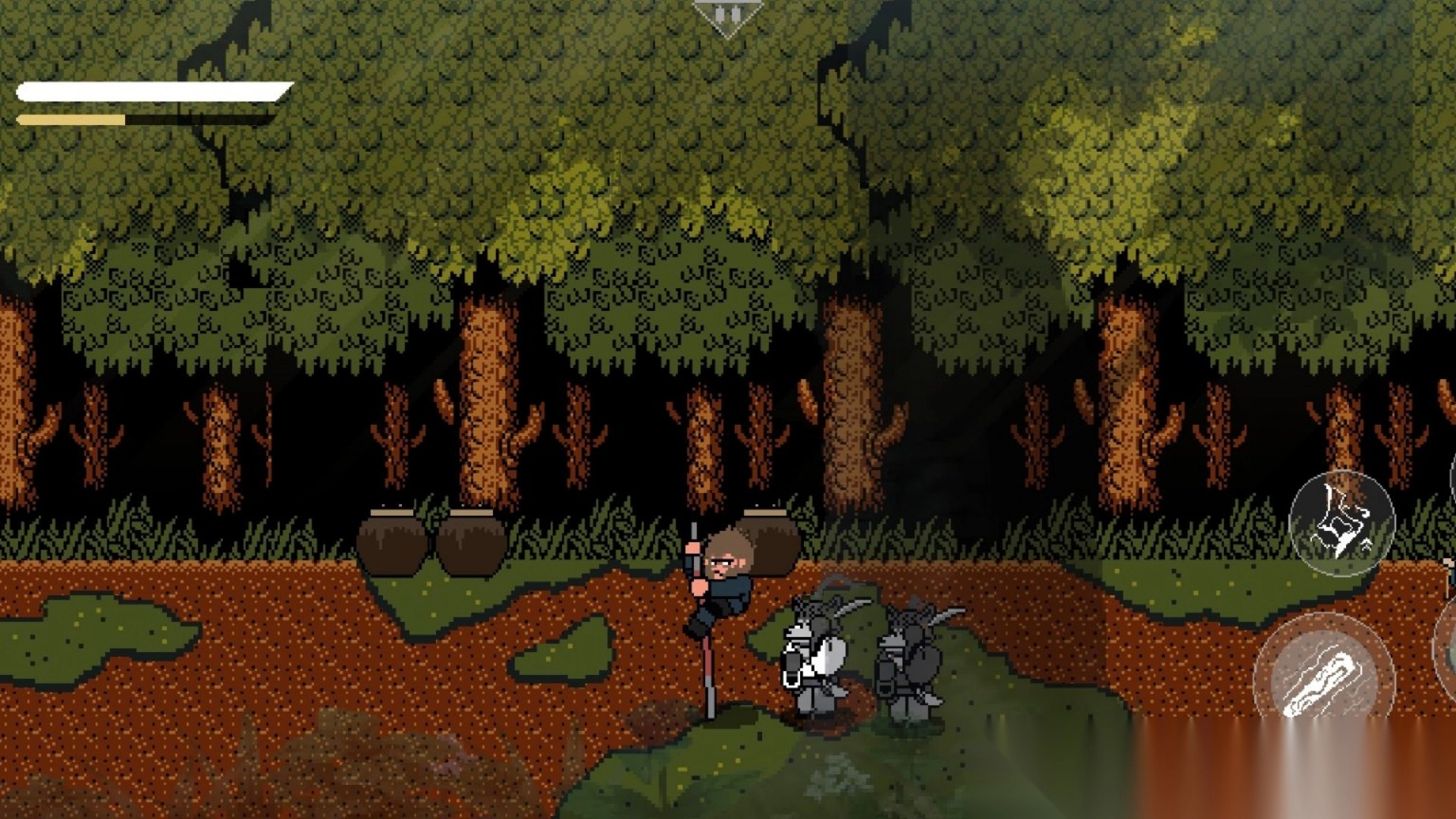 操控孙悟空进行移动与攻击,在像素风格的场景中与怪物展开战斗,推动西游主题的冒险剧情向前发展。
