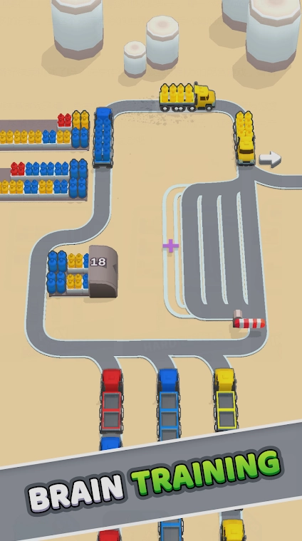 玩家扮演工厂管理员,借助操控各色卡车,把随意堆放的瓶子分类运送出去,益智玩法颇具趣味。
