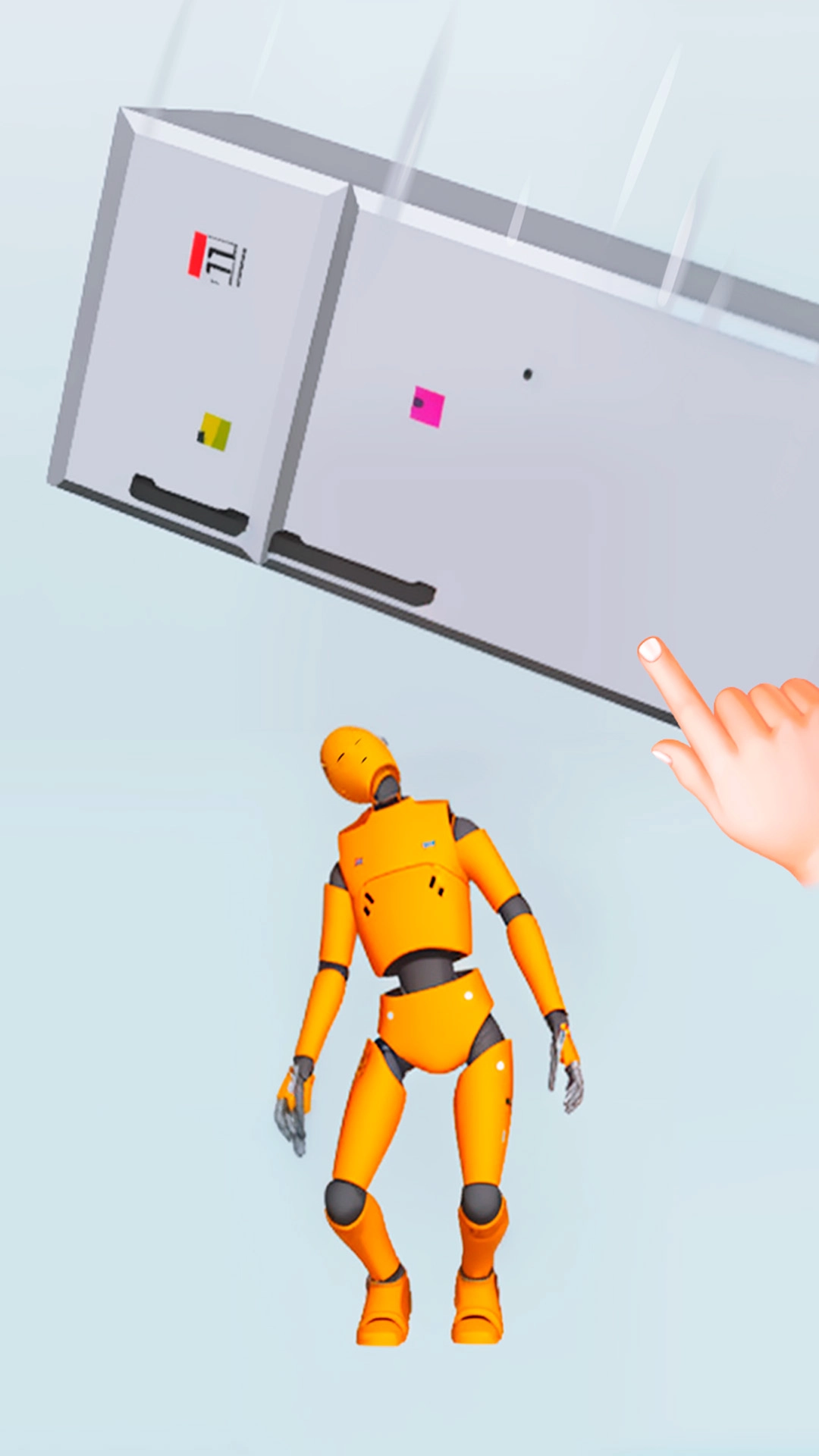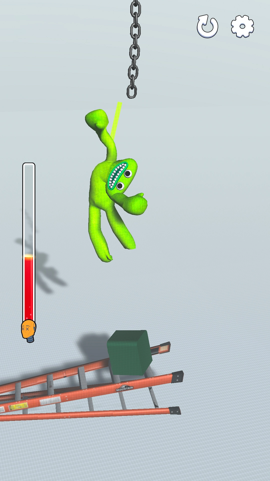 通过操控铁链、重物等各类道具,对屏幕里的绿色怪物、橙色机器人等角色进行摆弄。