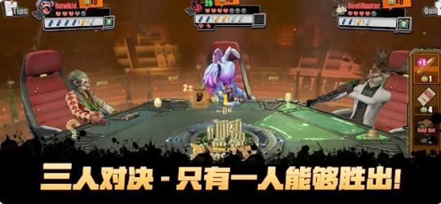 3. 丰富多样的技能与道具可供自由搭配组合,为玩家拓展出广阔的战术施展空间,使得每一局游戏都蕴含着不可预测的无限可能。每局开局会随机分配实弹和空弹,玩家能自主挑选射击目标,以此展开极致的心理博弈。2、主动攻击其他玩家可积累亡命值,该数值能让玩家在生命值耗尽后,于短时间内实现对对手的反杀。3、玩家可拾取并运用干扰弹、概率转换芯片、电磁护盾等各类战术道具,借助这些道具来改变战局走向。
