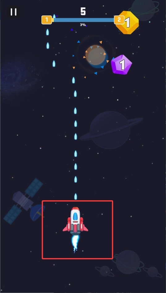 1、通过手指在屏幕上左右滑动来操控飞行器移动,灵活避开途中的障碍物,同时收集散落的宝石以提高移动速度。