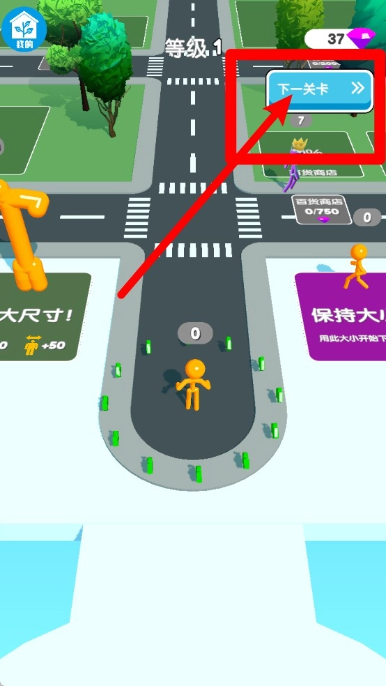 2.点击主界面右上角“下一关卡”按钮即可进入新的挑战关卡,继续进行收集道具与成长闯关的奔跑体验。