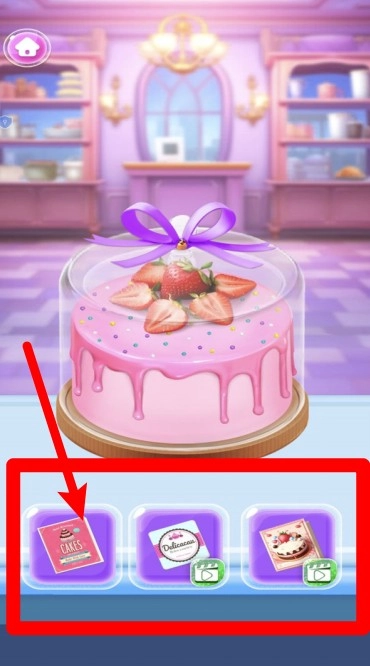 在游戏界面的下方区域,能看到各类道具的图标,点击这些图标就能开启各类蛋糕的创作啦。