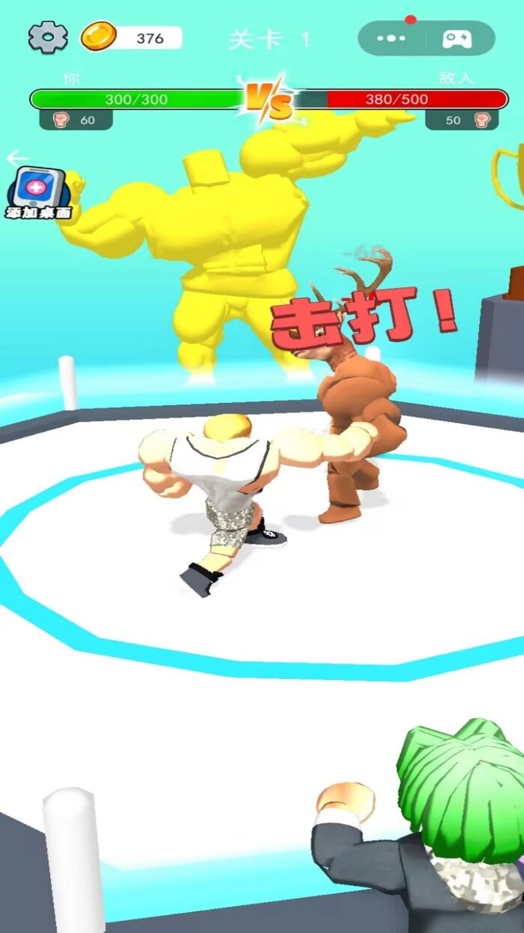 Boss战的实用技巧:当自身肌肉值比对手低时,不妨试试快速连续点击屏幕来触发“暴击”效果;另外,在最终关卡前留存一个护盾道具,能显著提高获胜的几率。
