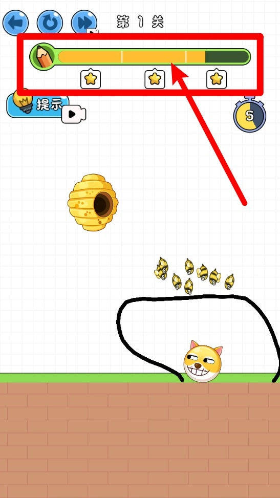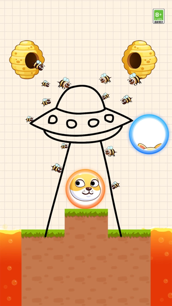 1.画线机制灵活应对:玩家需要在狗蛋和蜜蜂之间画出防护线,线条角度与结构决定能否成功躲避追击,挑战性非常高。